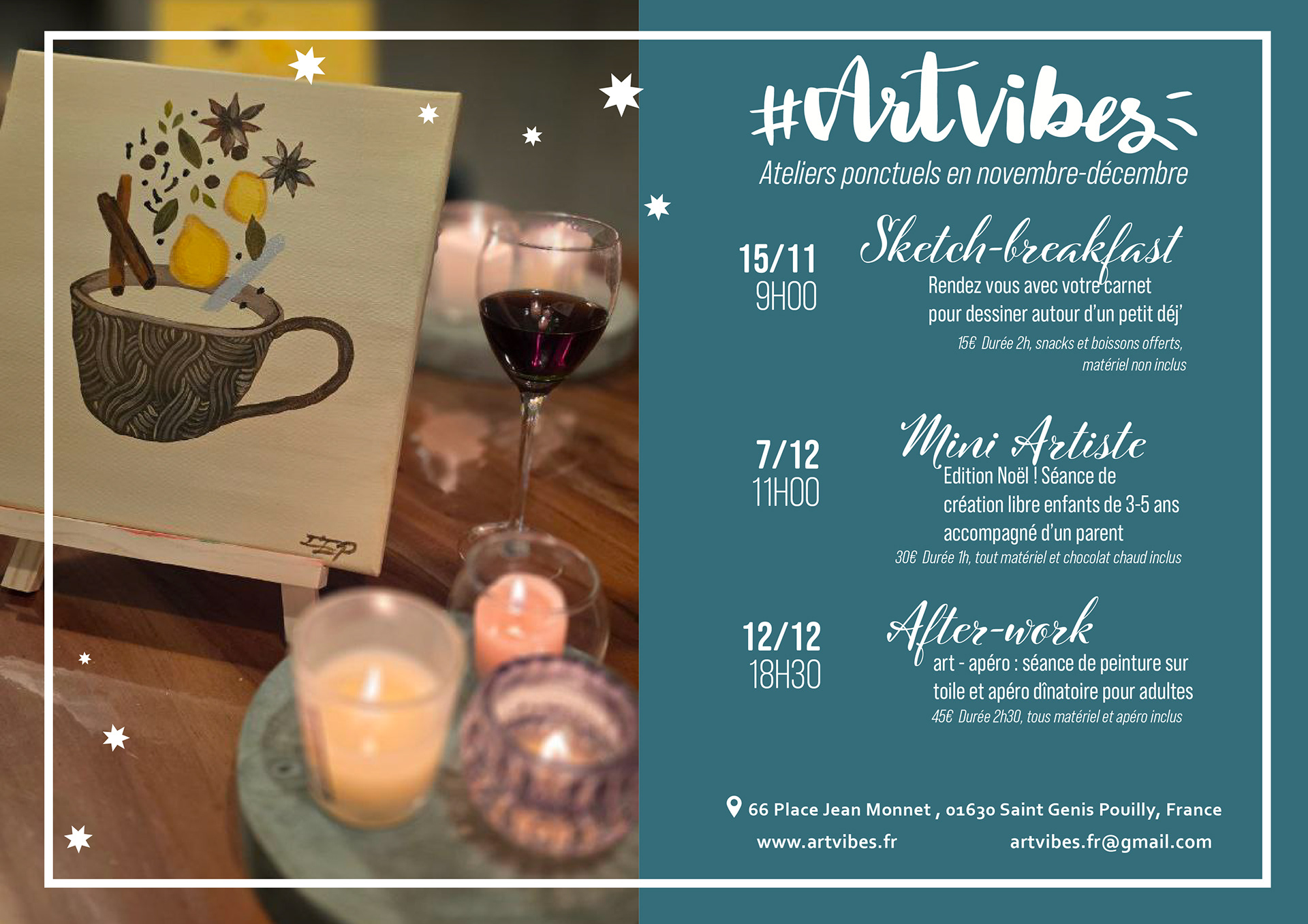 Nouveau: ateliers ponctuels art apéro/brunch/petit déj: