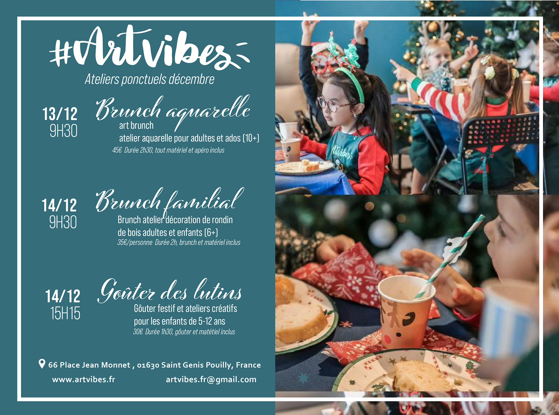 14/12/2025 - 15h15 Goûter des lutins - goûter festif et ateliers créatifs pour les enfants de 5-12 ans . Durée 1h30 - 30 € (matériel et goûter inclus)